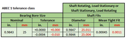 В Таблице 1 спецификация диаметра вала предназначена для создания небольшой взаимной посадки с внутренним даметром подшипника, поскольку допуски гарантируют,
